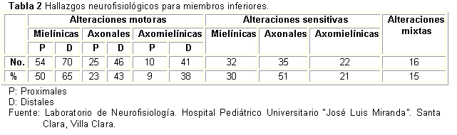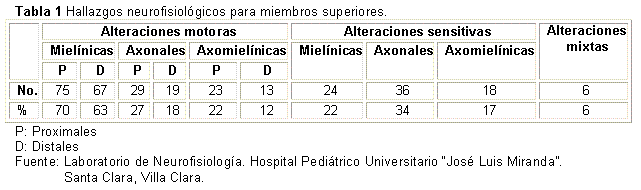 Se consideraron alteraciones axomielínicas cuando cumple con los dos criterios anteriores, y alteraciones mixtas, cuando reúnen alteraciones sensitivas y motoras.