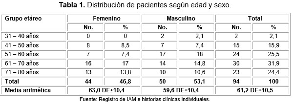 La distribución de los pacientes según sexo y grupo etáreo demostró un predominio del sexo masculino y del grupo de edad comprendido entre 61 70 años (Tabla 1).